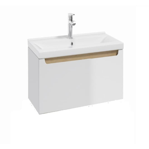 Függő fürdőszoba szekrény kerámia mosdóval VERSO60 fehér színben. Méret 60x30x45 cm. Frontfelület MDF lakkozott. Fiók kivágással a szifon számára. A terméket szétszerelve szállítjuk, az összeszerelési útmutatóval együtt.