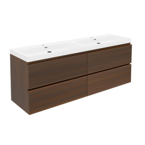 Felakasztható fürdőszobaszekrény kerámia mosdóval diófa dekorban matt felülettel mérete 119x50x45 cm. A felület lamino kivitelben.