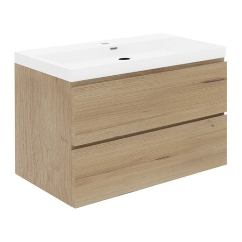 Felakasztható fürdőszobaszekrény kerámia mosdóval tölgyfa dekorban matt felülettel mérete 99x50x45 cm. A felület lamino kivitelben.