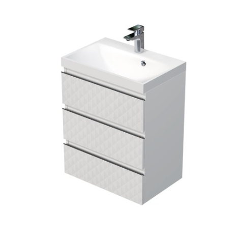 Felakasztható fürdőszobaszekrény mosdóval öntött márványból fehér színben matt felülettel mérete 60x71x40 cm. A felület lamino kivitelben. Teljes kihúzással és behúzással.