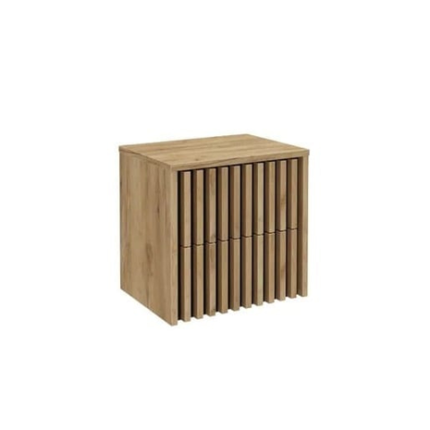 Felakasztható fürdőszobaszekrény tölgyfa dekorban matt kivitelben mérete 60x56x45 cm. Teljes kihúzással és behúzással.