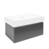 Felakasztható fürdőszobaszekrény kerámia mosdóval antracit színben matt felülettel mérete 80x30x46 cm. A felület lamino kivitelben.