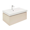 Felakasztható fürdőszobaszekrény kerámia mosdóval homok bézs színben matt felülettel mérete 80x30x46 cm. A felület lamino kivitelben.