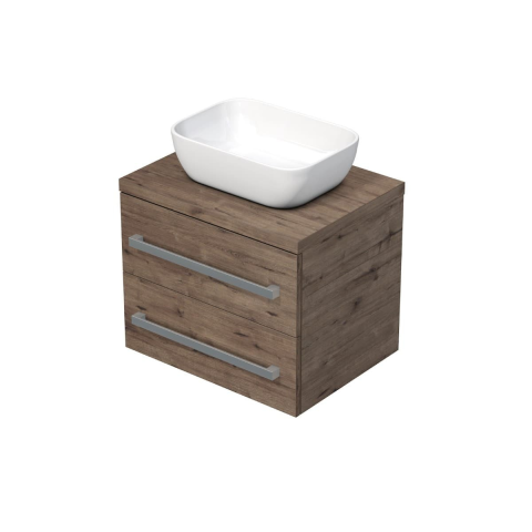 Függő fürdőszobaszekrény kerámia mosdókagylóval, tölgyfa wellington matt kivitelben, méret 60x53x46 cm. Felület laminált.