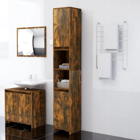 1 kép füstös tölgy színű szerelt fa fürdőszobaszekrény 30x30x183,5 cm