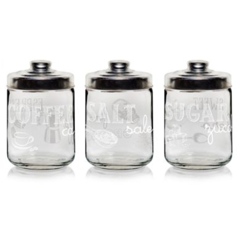 Egyforma méretű üvegedény – COFFEE, SUGAR, SALT felirattal