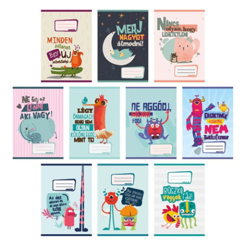 Füzet pd kisalakú 12-32 vonalas Monsters 2024 pd kisalakú füzet formalakkozott borítóval belív: 12-32 vonalas 10 féle minta, a minta nem választható