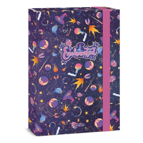 Füzetbox ARS UNA A/4 Enchanted A/4 méretű füzetbox. Kemény, tartós kartonból, 4 cm-es gerinccel, fényes fóliával, 7 mm széles gumipánttal. Belseje egy színnel nyomott. Füzetek, iratok tárolására .