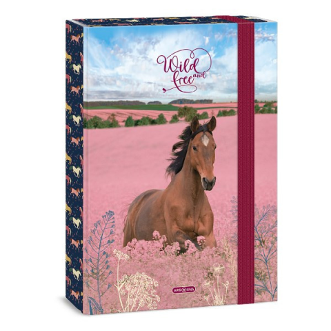 Füzetbox ARS UNA A/4 Wild And Free A/4 méretű füzetbox. Kemény, tartós kartonból, 4 cm-es gerinccel, fényes fóliával, 7 mm széles gumipánttal. Belseje egy színnel nyomott. Füzetek, iratok tárolására .