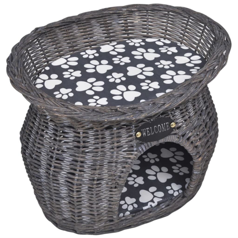 Színe: szürkeAnyaga: fűzfaPuha szövetpárna aranyos tappancsmintávalMérete: 44 x 33 x 34 cm (Ho x Szé x Ma)Welcome címkévelKönnyű, és egyszerűen hordozhatóAlkalmas macskák, kutyák, kiscicák és kutyakölykök számára alvásra, pihenésre vagy játékraHáziáll