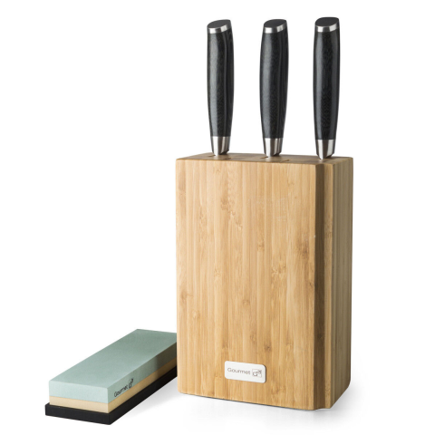 1 kép G21 Damascus késszett (3 db) bambusztartóval + ajándék csiszoló kővel