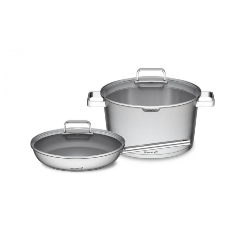 4 darabos készlet minőségi és ellenálló edényekkel, precíz kidolgozással és kiváló tulajdonságokkal. Megfelel minden típusú tűzhelyre. Minőségi, ellenálló, dizájnos rozsdamentes acélból készült edények belső tapadásmentes teflonos réteggel. A részletek
