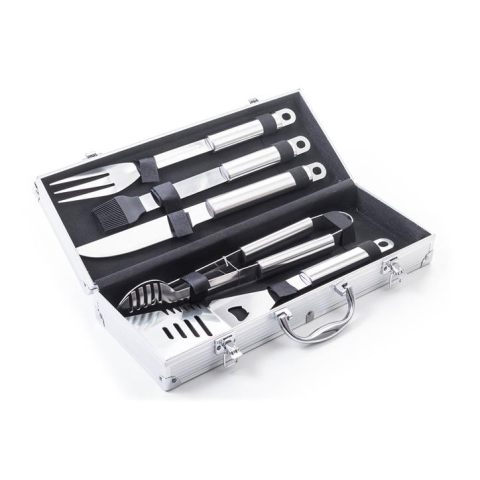 A bőröndben lévő G21 grillező eszköz húsforgatót, villát, grillező csipeszt, hosszú grillező kést és kenőecsetet tartalmaz. Az ellenálló alumínium bőrönd a 40 cm hosszú grillező eszközök egyszerű és biztonságos áthelyezését és tárolását biztosítja. A G