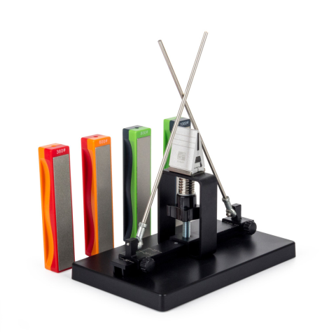 Az élezőrendszer 4 finomságú (#360/600/800/1000) gyémánt élezőlapot tartalmaz. a kívánt élszög, oldalanként 15 és 30 fok között fokozatmentesen beállítható. Praktikus kufferbe csomagolva A minőségi kések minőségi gondoskodást érdemelnekSzerezzen be eg
