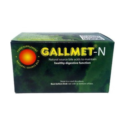 GALLMET®-N természetes epesavakat tartalmazó, bélben oldódó étrend-kiegészítő kapszula Kiszerelés: 90 kapszula Nettó tömeg: 36 g Összetevők: szárított marhaepe; kapszula héj: hidoxi-propil-metil-cellulóz; tömegnövelő: mikrokristályos cellulóz; kapszul