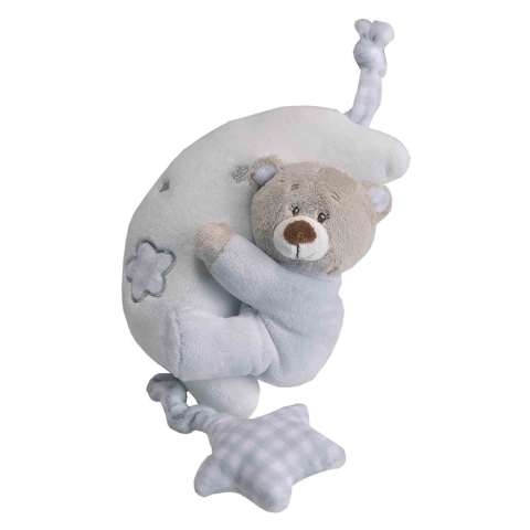 Ez a bájos plüssmaci, aki kényelmesen ül a Holdon, nemcsak aranyos társ, hanem egy varázslatos altatódallal segíti kisbabád elalvását. Egyszerűen csak húzd fel, hogy elinduljon a zene, mely álomba ringatja csöppségedet. A Gamberritos egy spanyol márka, a