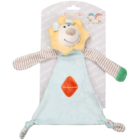 Gamberritos szundikendõ plüss oroszlán 10173 Ezt a nagyon cuki pihe-puha anyagú plüss állatos szundikendõt a ti babátok is imádni fogja! Újszülött kortól javasolt. A változatos játék hozzájárul a kicsinek a fejlõdéséhez. 100% poliészter anyagú.