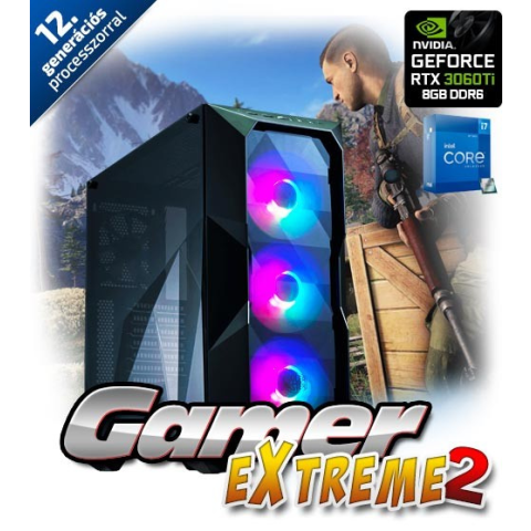 1 kép Gamer Extreme 2 12.gen konfiguráció - i7-12700KF, 32GB DDR4 3000MHz RAM, 2TB M.2 (6000/7300), 2TB HDD, RTX 3060 Ti 8GB