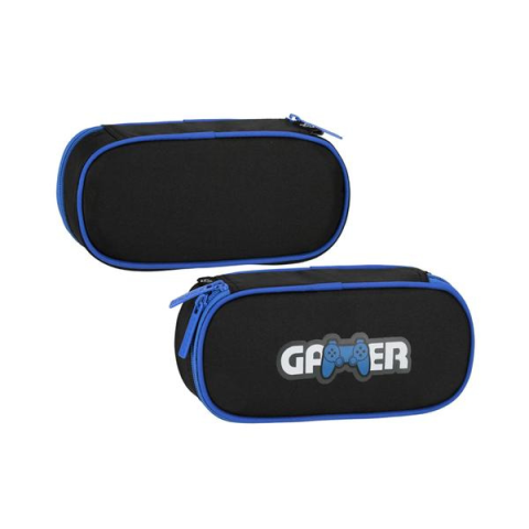 Gamer tolltartó – fekete-kék, cipzáras, játékos dizájnnal 550911Ez a modern megjelenésű tolltartó kifejezetten a videojátékok kedvelőinek készült. Fekete alapszínét kék szegélyek és egy „GAMER” felirat teszi különlegessé, amelyhez egy kontroller ikon is társul. Két külön cipzáras rekesz biztosítja az írószerek kényelmes rendszerezését.Tulajdonságok:„GAMER” felirat és kontroller minta a gamer stílus kedvelőinekDupla cipzáras kivitel – két jól el