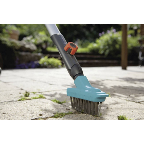 Ideális a moha könnyű eltávolításához a csatlakozásokban és a fal szélein. Acélból készült sörték. A réskefe minden GARDENA-combi rendszer-szárhoz illeszkedik, 130 vagy 150 cm-es fogantyúhosszúsággal, a magasságtól függően.
