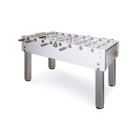 Garlando G500 nyitott kivitelu versenyméretu csocsóasztal. Az asztalifoci kitunik az átlagos otthoni csocsóasztalok közül. A játékélmény már inkább a versenyasztalok intenzitását türözi, mintsem az otthoni felhasználásra szánt asztalokét. Best Seller termék kínálatunkban. Megjelenésében is a Garlando versenyasztalok formáját hozza fehér-ezüstös kombinációjú fényezésével