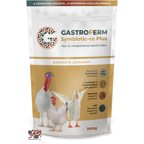 Gastroferm Symbiotic-cc Plus 1 kg- BaromfiknakPre- és probiotikumBaromfik számára kifejlesztett koncentrált pre- és probiotikum készítmény C-vitaminnal az emésztés és az immunrendszer támogatására. A Gastroferm Symbiotic-cc Plus hozzájárul a háziállatok (