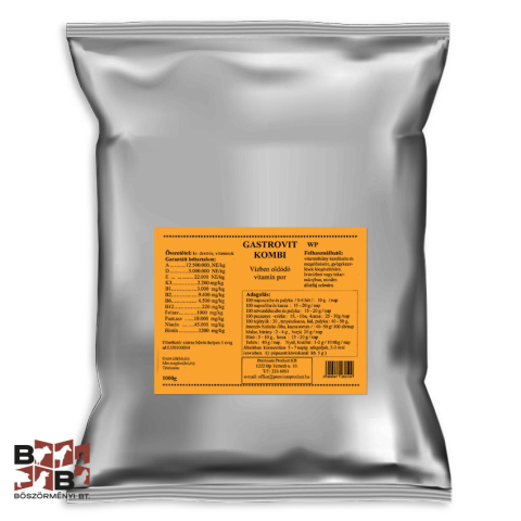 Gastrovit Kombi 1 kgPre- és probiotikumA Gastrovit Kombi egy magas vitamintartalmú, takarmányban és ivóvízben is oldódó kiegészítő por minden állatfaj részére. Alkalmazható vitaminhiány kezelésére és megelőzésére, valamint gyógykezelések kiegészítésére. A