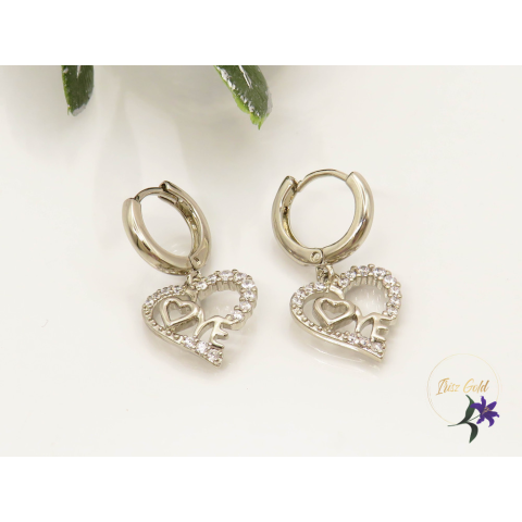 Antiallergén white szivecske csüngős fülbevaló gazdagon díszített cirkóna kövekkel Szin: rodium Méret: 24x10mm Zár: karika 10mm