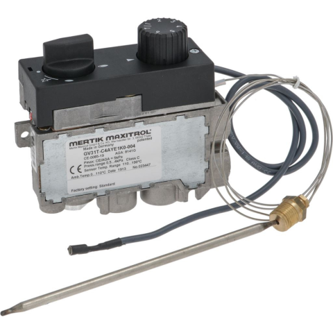 modell GV31T-C4AYE1K0-004 | bemenet ø 3/8'F - kimenet ø 3/8'F | termosztát csatlakozás M9x1 | max gáz bemeneti nyomás 50 mbar | tartalmaz gyújtókábelt - hossz 520 mm | kapilláris hossz 1020 mm | tömítő tömszelence M8x1 | tank tömítés ø 1/4' | izzó ø 5x160