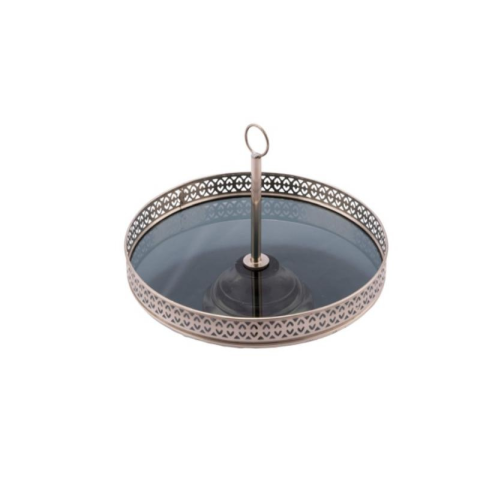 Geh.22204180 Asztali kínáló ezüst színű fém, üvegbetéttel, 25x25x21cm