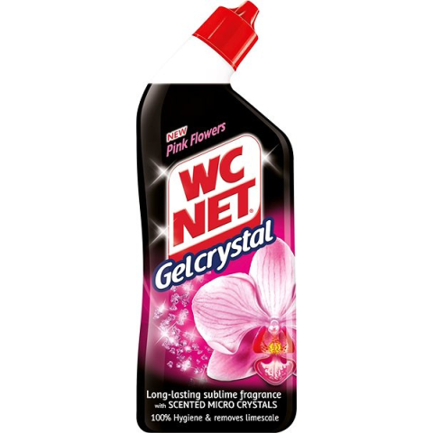 WC gél - a tökéletesen tiszta és friss illatú WC-ért A WC NET Crystal Pink Flowers egy gyöngyházfényű mikrokristályokat tartalmazó gél, amely kiválóan tapad a WC falához és hatékony tisztítást biztosít. Az új összetételnek és kellemes illatnak köszönhet