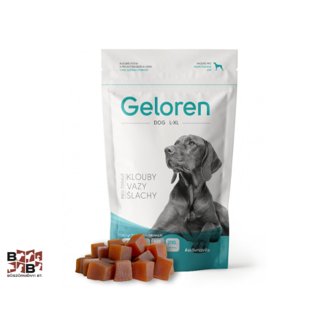 A Geloren egy ízesített rágható zselékocka, ami teljes körű védelmet nyújt a kutyák ízületeinek azáltal, hogy nagy koncentrációban hialuronsavat, kondroitin-szulfátot, hidrolizált kollagént és zselatint tartalmaz. Ajánlott a gyors növekedésű, nagytest