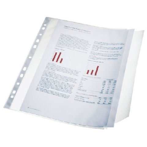 ESSELTE Lefűzhető tasak szupererős anyagból. A behajtható fülnek köszönhetőenaz iratok nem szennyeződnek, illetve szállításkor sem csúsznak ki atasakból. A/4 méretű lapokhoz, 11 db lyuk a lefűzőrészen. 100 mikronos.Mérete: 240 x 7 x 31 mm. 10 db/csomag