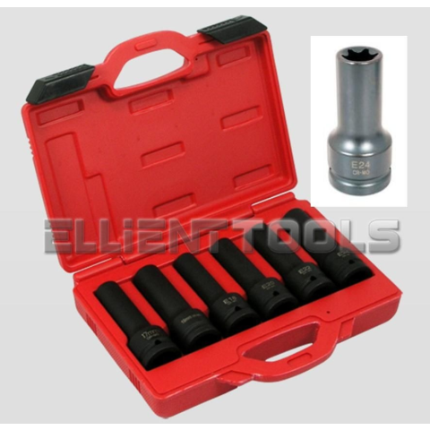 GÉPI HOSSZÍTOTT E-TORX DUGÓKULCSOK 3/4-OS HAJTÁSSAL E-18; E-20, E-22; E-24 12 SZÖGŰ DUGÓKULCSOK 17MM ÉS 19MM G4/5