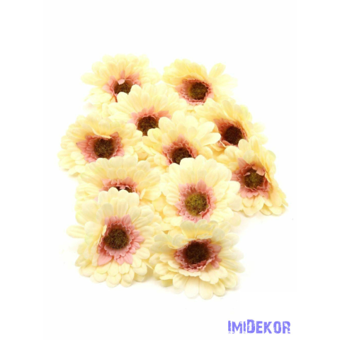 Gerbera selyemvirág fej 8 cm 11 db/csomag - Krém-Rózsaszín