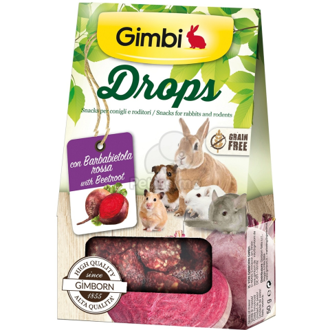 A Gimbi Drops egy természetes jutalomfalat rágcsálók számára. Jellemzők: - Gabonamentes - Mesterséges színezéktől mentes, - Természetes és egészséges snack - Rendkívül ízletes - Érzékeny kedvenceknek is