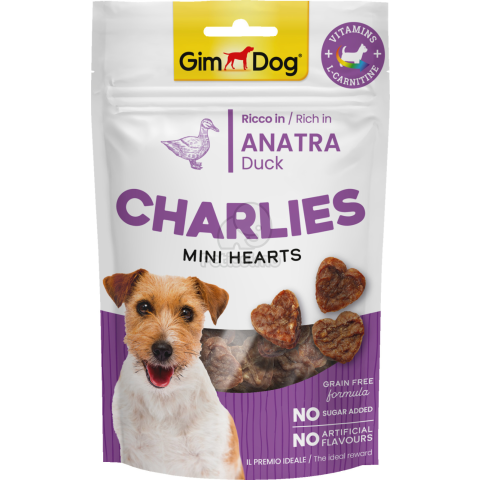 1 kép GimDog Charlies Mini Hearts jutalomfalat - kacsa, szívecske formájú 70 g