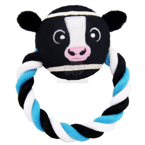 GimDog Country Ring állatmintás rágókötél karika labdával Tehenes