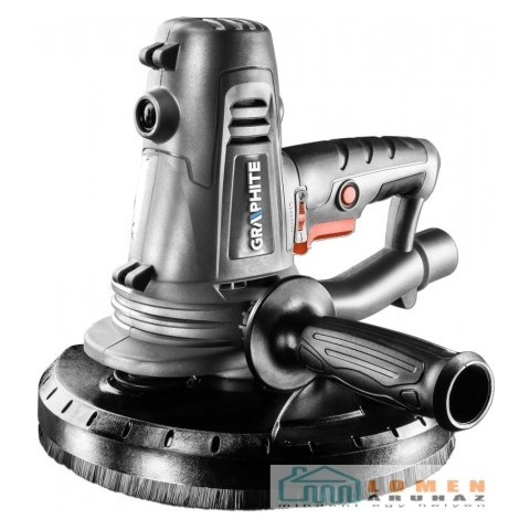 A GRAPHITE 1 050 W teljesítményû falcsiszoló (kat. sz. 59G262) rendeltetése gipszfelületek precíz megmunkálása. A falcsiszoló csiszolótárcsája közvetlen meghajtású ? meghajtótengely közbeiktatása nélkül. A fej fordulatszáma fokozatmentesen szabályozha