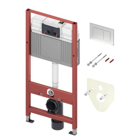 TECE profilkészlet 4 az 1-ben. A csomag tartalma: TECEprofil alap WC-hez, vezérlés elölről, építési magasság 112 cm - csavarok és tiplik a teherhordó falra rögzítéshez - vezérlőgomb TECEnow fényes króm! - TECEprofil hangszigetelő betét WC-hez