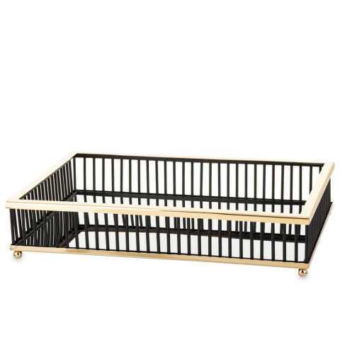 1 kép Glamour design aranyszegélyes szögletes fém tálca fekete pálcás díszítéssel 7,5x38x26cm