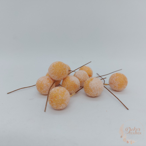 1 kép Glitteres drótos bogyó - 1,5 cm - hamvas barack