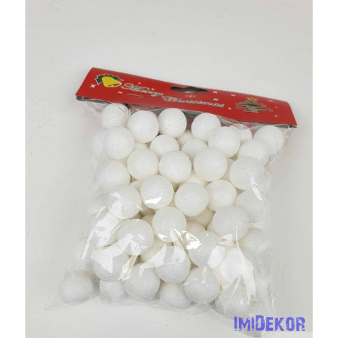 Glitteres golyó díszítő 2cm kb 85db/cs - Fehér