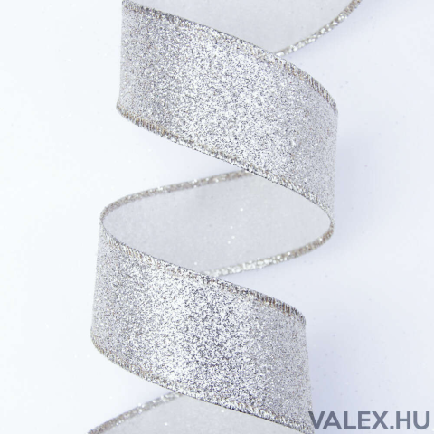 Glitteres karácsonyi szalag drótos szegéllyel 40mm x 5m - Ezüst szalag, masni árgrafikon