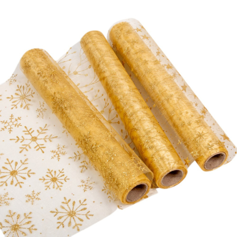 1 kép Glitteres organza dekor anyag arany 30x500cm