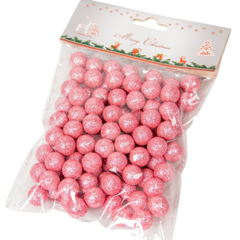 Glitteres polisztirol golyó rózsaszín 1cm kb.10-15gramm