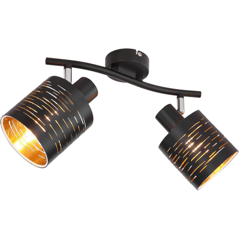 A különösen szép Tunno Clarke mennyezeti lámpa formatervével és csodálatos fényével hódít. A 29,6 cm hosszú lámpán két spot található, amelyek lyuggatott díszítéssel rendelkeznek. A textil lámpaernyők, amelyek belül fekete és arany színűek, két darab E14-es foglalattal rendelkeznek, amelyek lehetővé teszik, hogy tetszés szerint válasszon izzót (max. 15 W), és ezáltal fényerősséget és színhőmérsékletet is. A sorozat további modelljeivel teljessé teheti