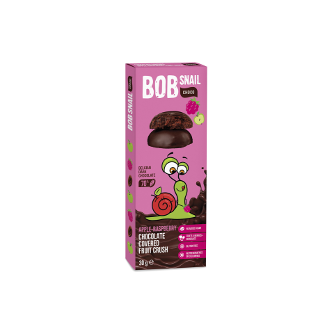 1 kép - Gluténmentes bob snail gyümölcssnack étcsokoládéban alma-málna 30g