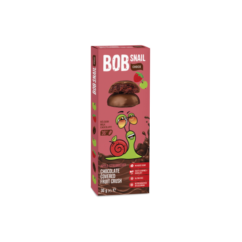 A Bob Snail újdonsága a csokoládéba mártott gyümölcssnack. A belseje 100% préselt gyümölcs, amelyet Belga tejcsokoládéba mártottunk. A csokoládé sem tartalmaz cukrot, stevia kivonattal van édesítve. Egészséges finomság az egész családnak!Hozzáadott cu