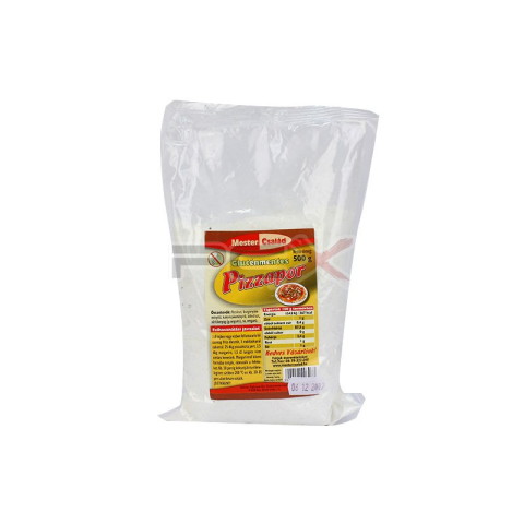 Mindenféle pizza tészta elkészítéséhez való gluténmentes por. Összetevők: Rizsliszt, burgonyakeményítő, kukoricakeményítő, kölesliszt, sűrítőanyag (guárgumi), só, oregánó. Tápérték tartalom 100g termékben: Energia: 1543 kJ (367 kcal); Fehérje: 2,4 g